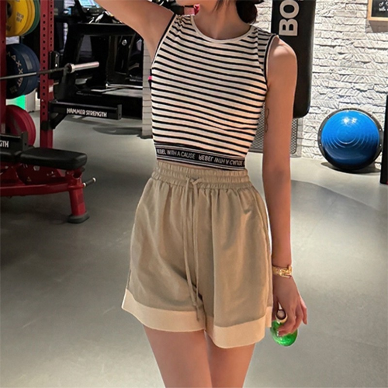로제탑 (캐쥬얼/포인트/흠뻑쇼/페스티벌룩/탱크탑/꾸안꾸/바캉스/휴양지/여행룩/여름/썸머/슬림/단가라/스트라이프/배색/레터링/밴딩/크롭/민소매/나시/티/탑)