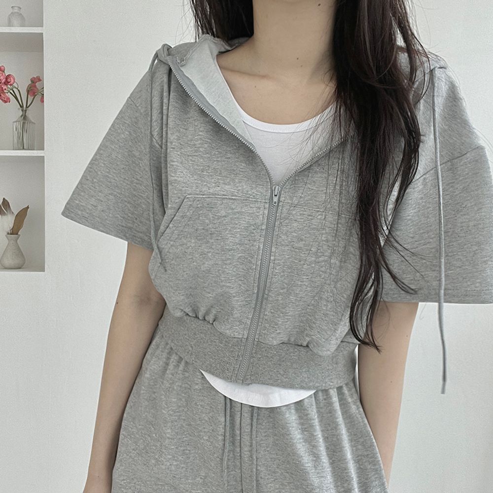 [5color] 데이 반팔 후드집업 크롭 후드 집업 반팔티 티셔츠 후드티