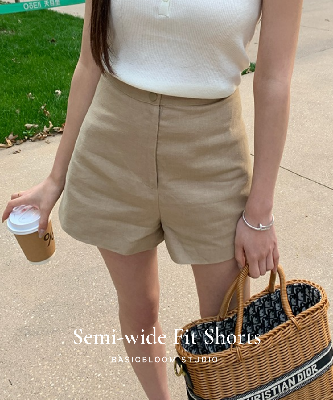 [코디룩🪃/데일리] 썸머 베이지 세미와이드 숏팬츠(하이웨스트, 키작녀)