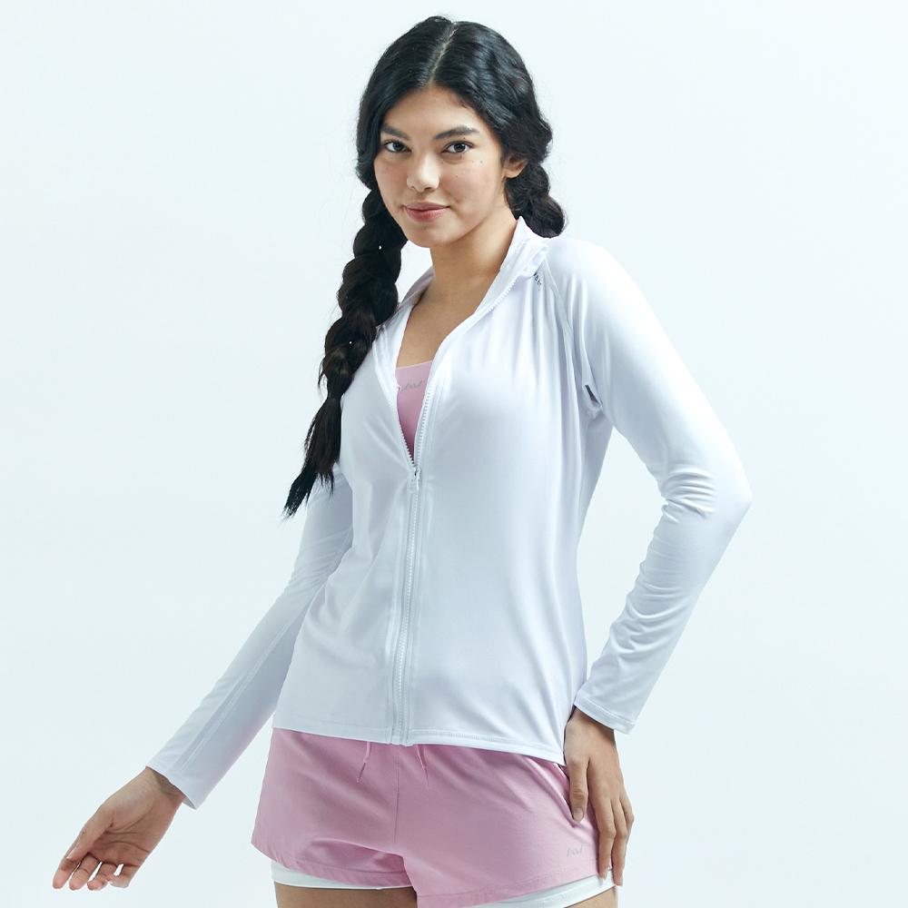 [🚀오늘도착/S~XL] 루즈핏 집업 여성 래쉬가드 에센셜 빅사이즈 체형커버 수영복 비치웨어 화이트