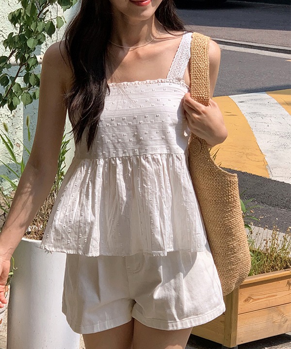 웬디스 썸머 레이스 플레어 뷔스티에 나시 블라우스