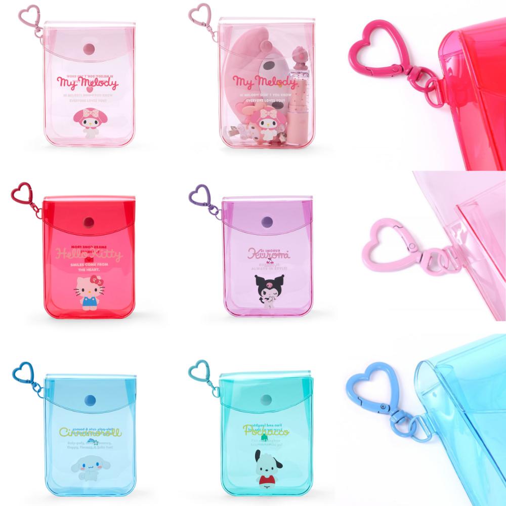 산리오투명파우치 여행준비물수납 버튼형 소품케이스 마이멜로디 헬로키티 쿠로미 시나모롤