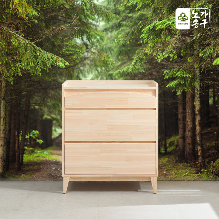 노송가구 샤르망 편백나무 3단 원목 서랍장 화장대