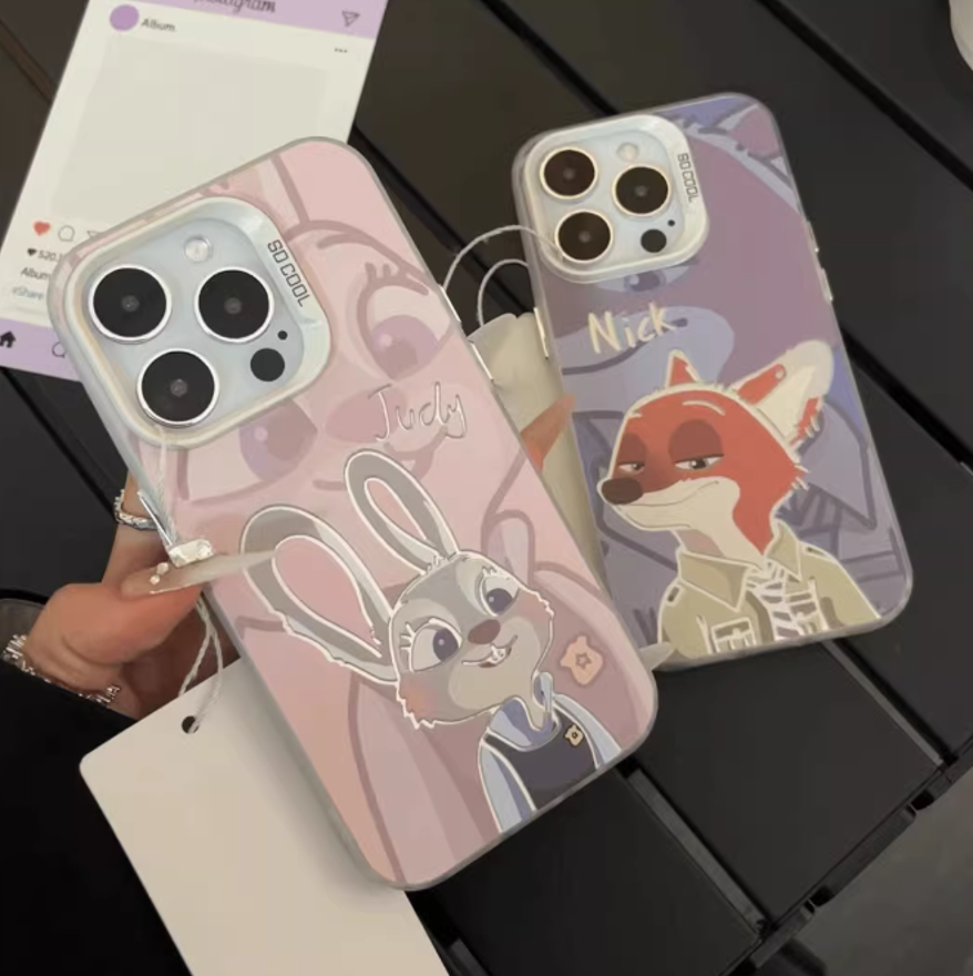주토피아 닉과 주디 Y2K 아이폰커플케이스 귀여운아이폰케이스 아이폰 15 14 13 12 11 x 8 7 se 13미니 12미니 6