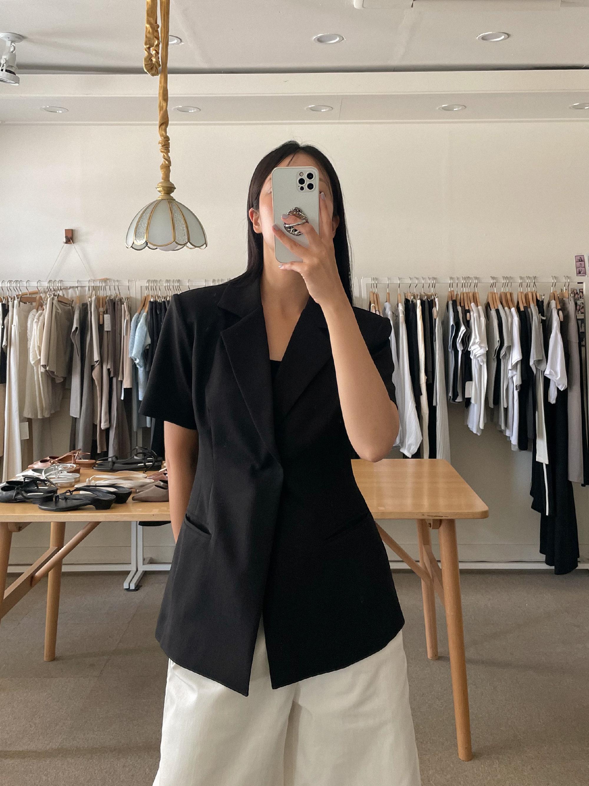 히베 여름 결혼식 하객룩 오버핏 라인 반팔 자켓 (2color)