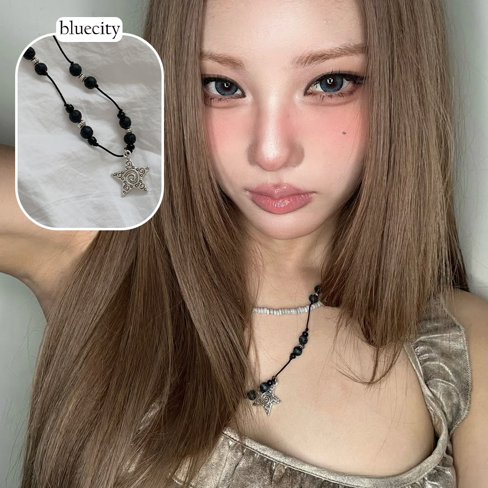 [솔라/퍼플키스 공식 협찬] 빈티지 스타 마키 화산석 매듭 롱 스트랩 끈 목걸이