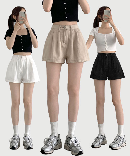 [허벅지커버/버뮤다]핀턱 버뮤다 3부 A라인 면 반바지