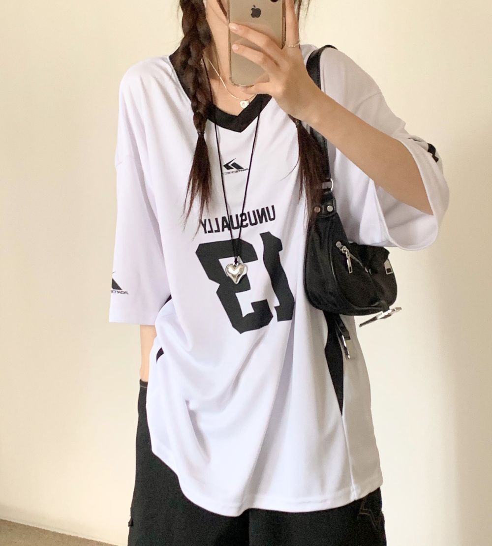 [메쉬t] 버블 넘버 레터링 브이넥 오버핏 유니폼 여름 반팔 티셔츠 (2color)