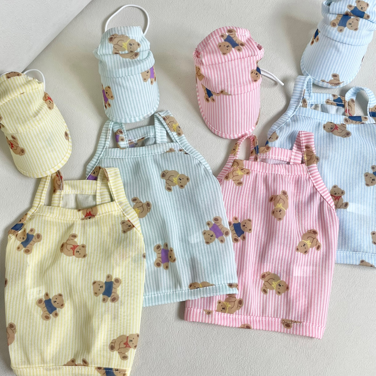 테디베어 민소매 나시 티셔츠&캡모자 세트 S-2XL 4colors 애견의류 강아지옷 고양이옷 미우바우MeowBaw