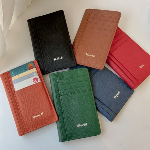 [주문제작] 이니셜 각인 레더 카드지갑 6컬러 고급스러운 가죽 케이스 반지갑