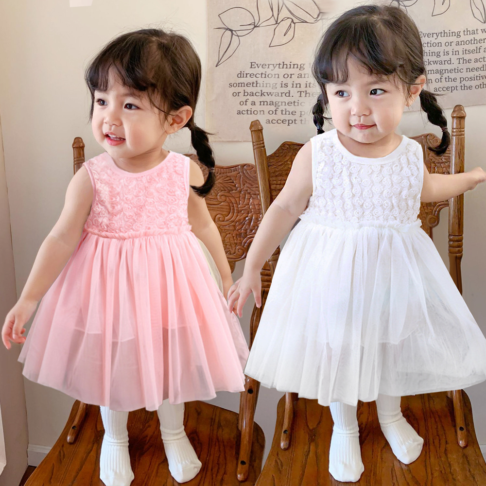 로즈 입체 레이스 꽃 패치 유아 여름 나시원피스 튜튜 샤 아기옷 정장 돌 촬영의상 들러리