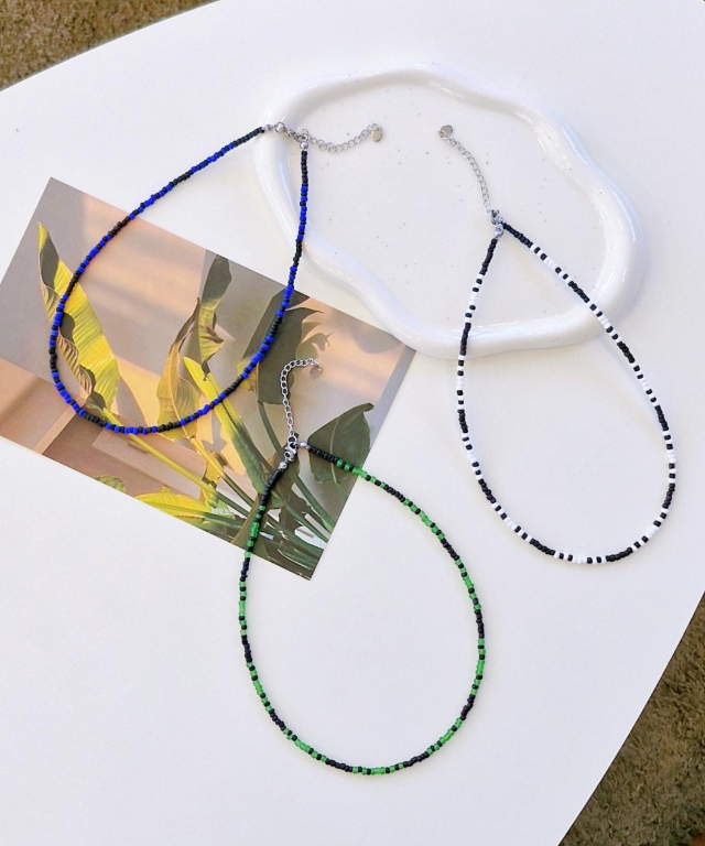블랙 베이스 미니 비즈 심플 초커 목걸이