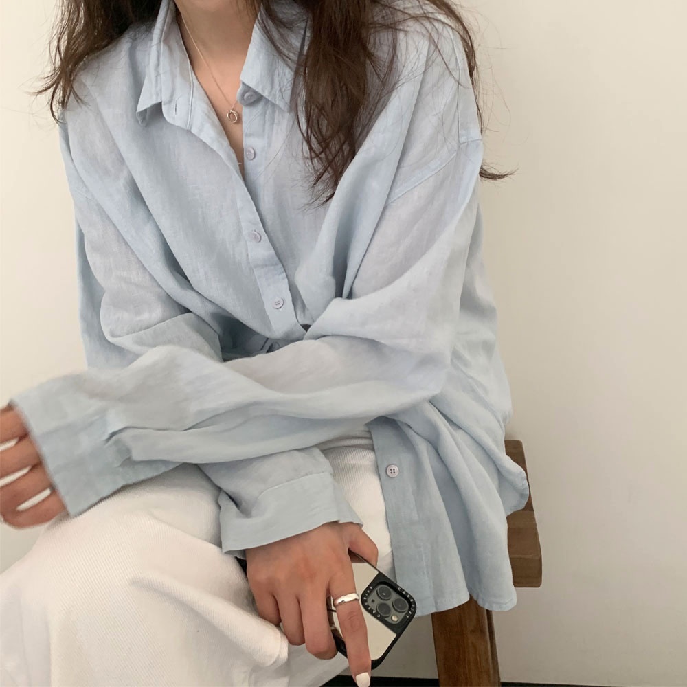 [여름셔츠/살안타템] 노튼 린넨 워싱 루즈핏 긴팔 오버핏 여름 셔츠