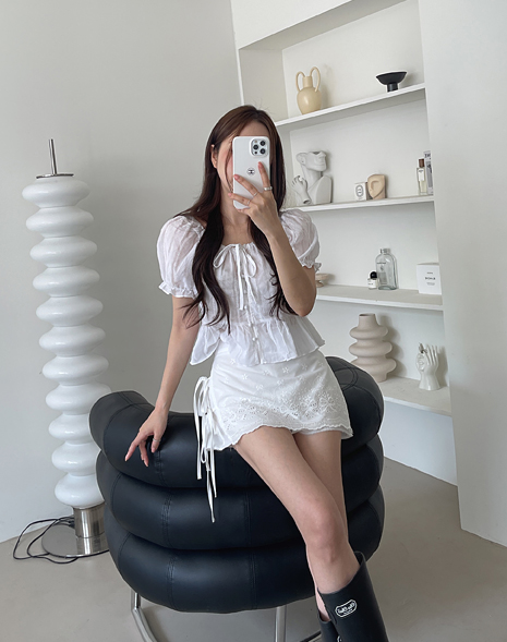 크러쉬 펀칭 레이스 블라우스