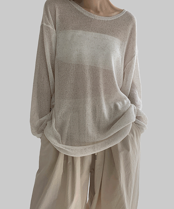 [무료배송] 세도스 시스루 린넨 니트 긴팔티