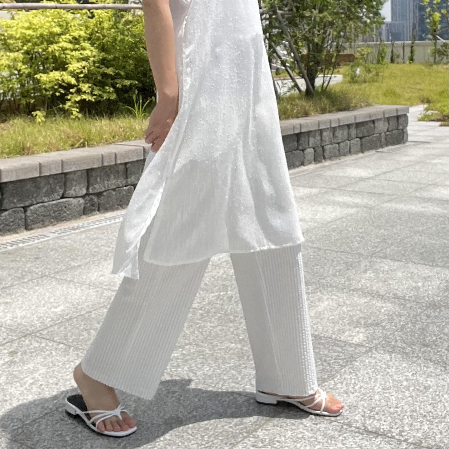 지지미 스트라이프 와이드 냉장고바지 여름 면바지 여성흰바지 시어서커 밴딩 슬랙스 빅사이즈
