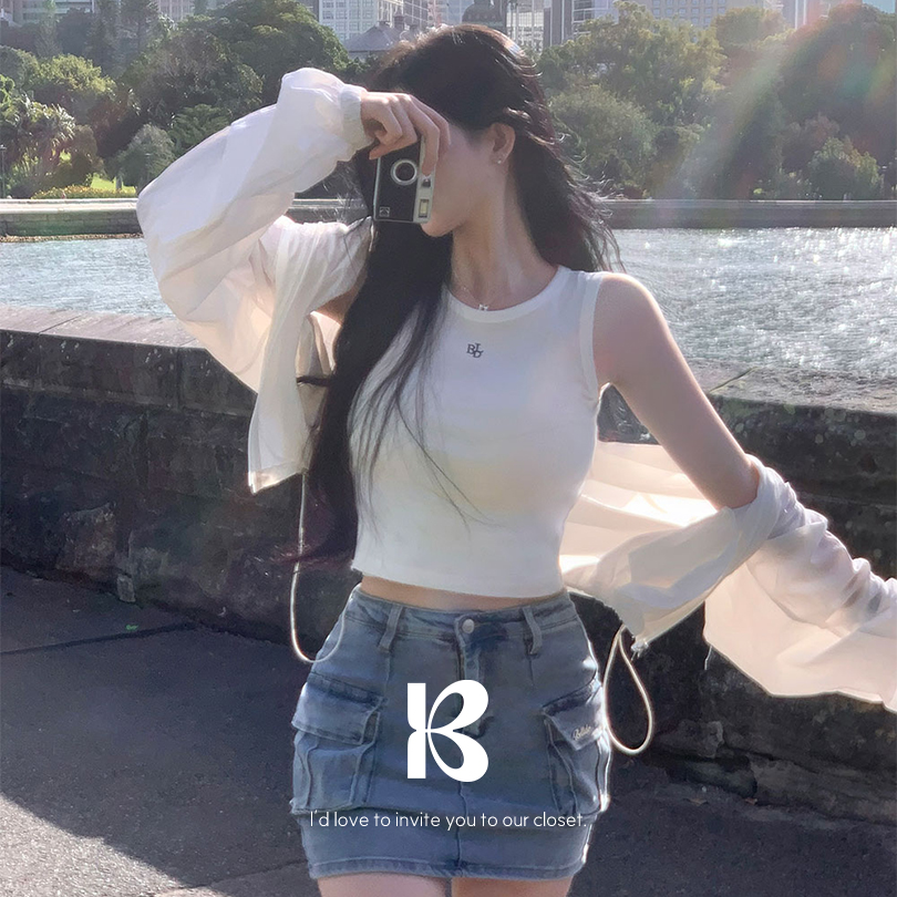 [MADE/데일리]워닝 골지 크롭 자수 나시&슬리브리스