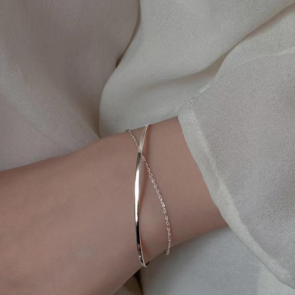 [💍하객룩 / 여리여리 & 데일리템 💖] 925 실버 더블 링 체인 레이어드 뱅글 팔찌
