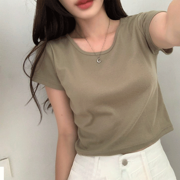 여유핏&반크롭! 포에 유넥 루즈핏 면 크롭 반팔티 5color [무지반팔/면반팔티/루즈핏반팔/루즈핏크롭티/반팔크롭티/연두색크롭티/여유핏크롭/기본면티]