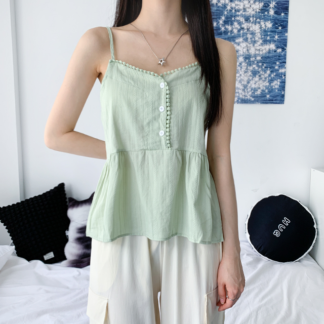 [최저가보장/3col] 닝닝 브이넥 레이스 단추 나시 블라우스
