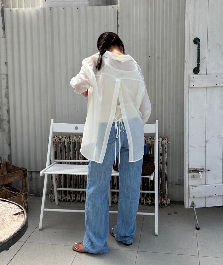 뒷리본 뒷트임 루즈 남방 셔츠(정말 얇아요)