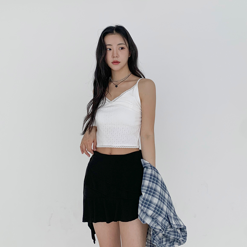 [무료배송][레이어드강추ෆ]큐핑 레이스 끈 나시-부유방커버 러블리 크롭 슬리브리스 펀칭 끈나시