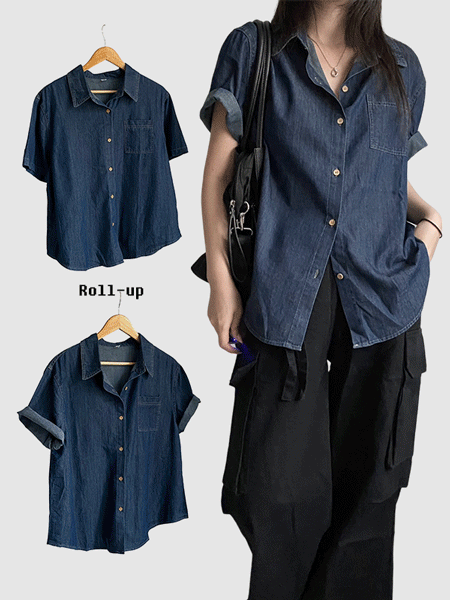 롤업 빈티지 데님 박시 데님 반팔 셔츠 남방