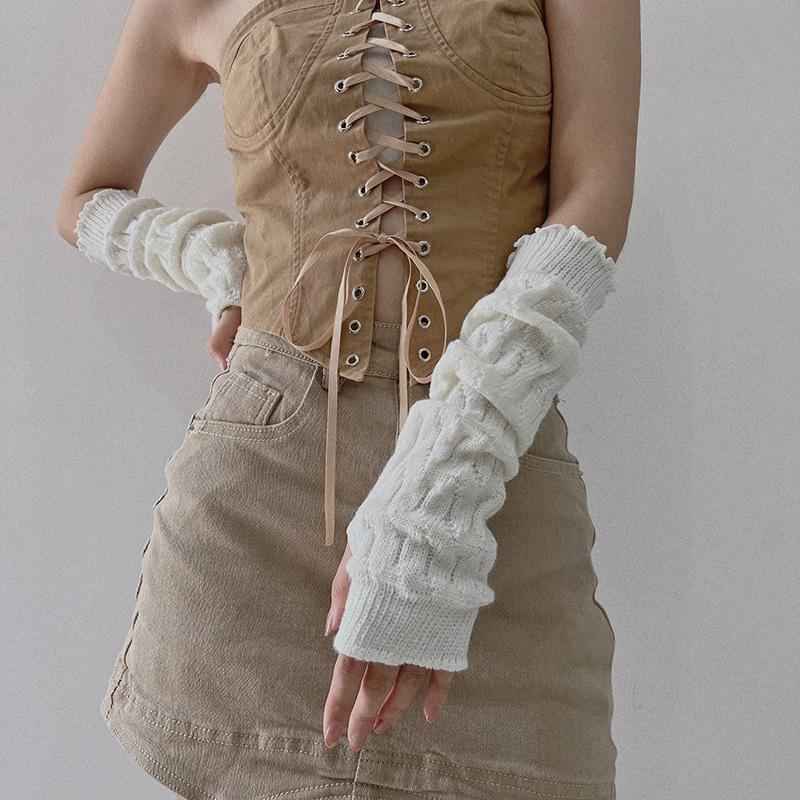 [포카] 포카포장 팔 워머 다이브로그 반장갑 손토시 핸드워머 니트 레이스 꽈배기 방한