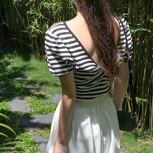 애플 썸머 유넥 백포인트 스트라이프 크롭 니트