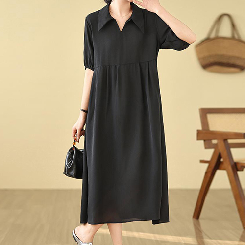 키어스 카라 핀턱 퍼프 반팔 원피스