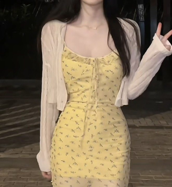 옐로우 프릴 나시 미니원피스+가디건 세트