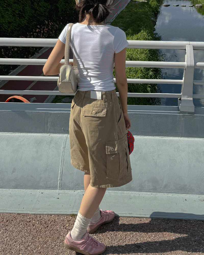 [탄탄고퀄/주문폭주]헤밀 빈티지 카고 와이드 버뮤다 팬츠 (2color)