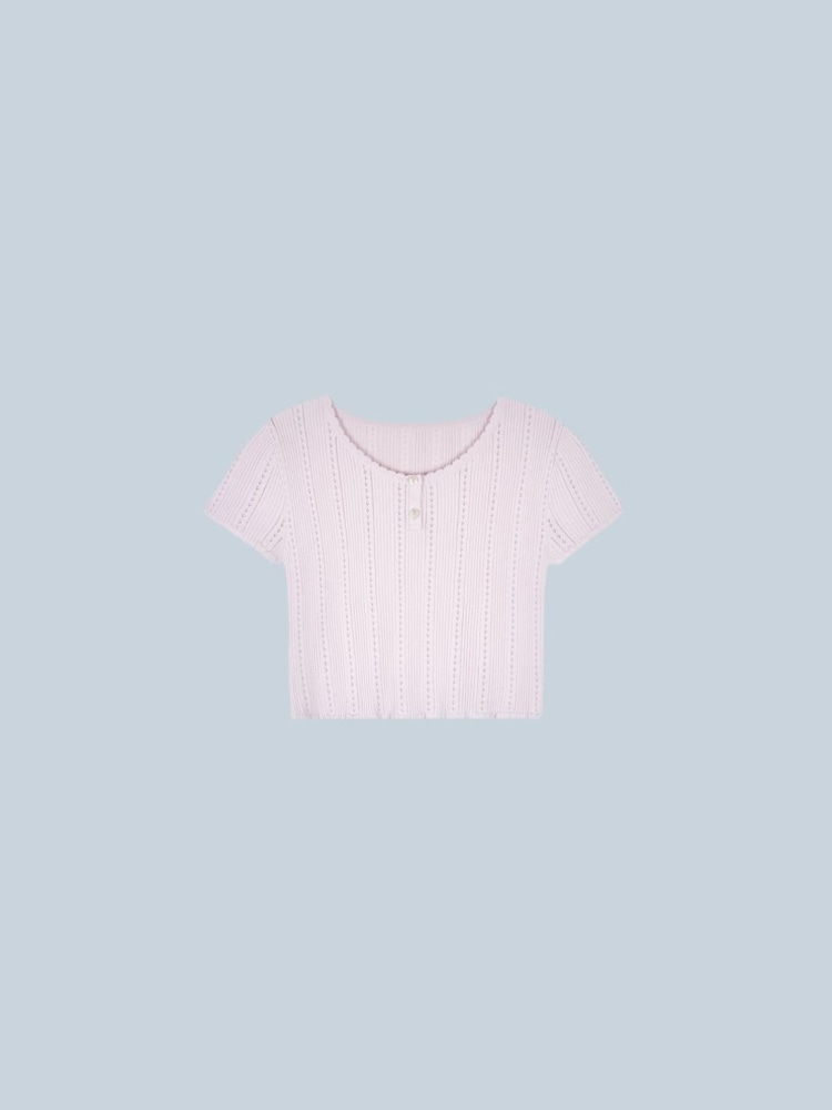 riette 리에뜨 에일 레이스 스카시 유넥 크롭 반팔 니트 2color