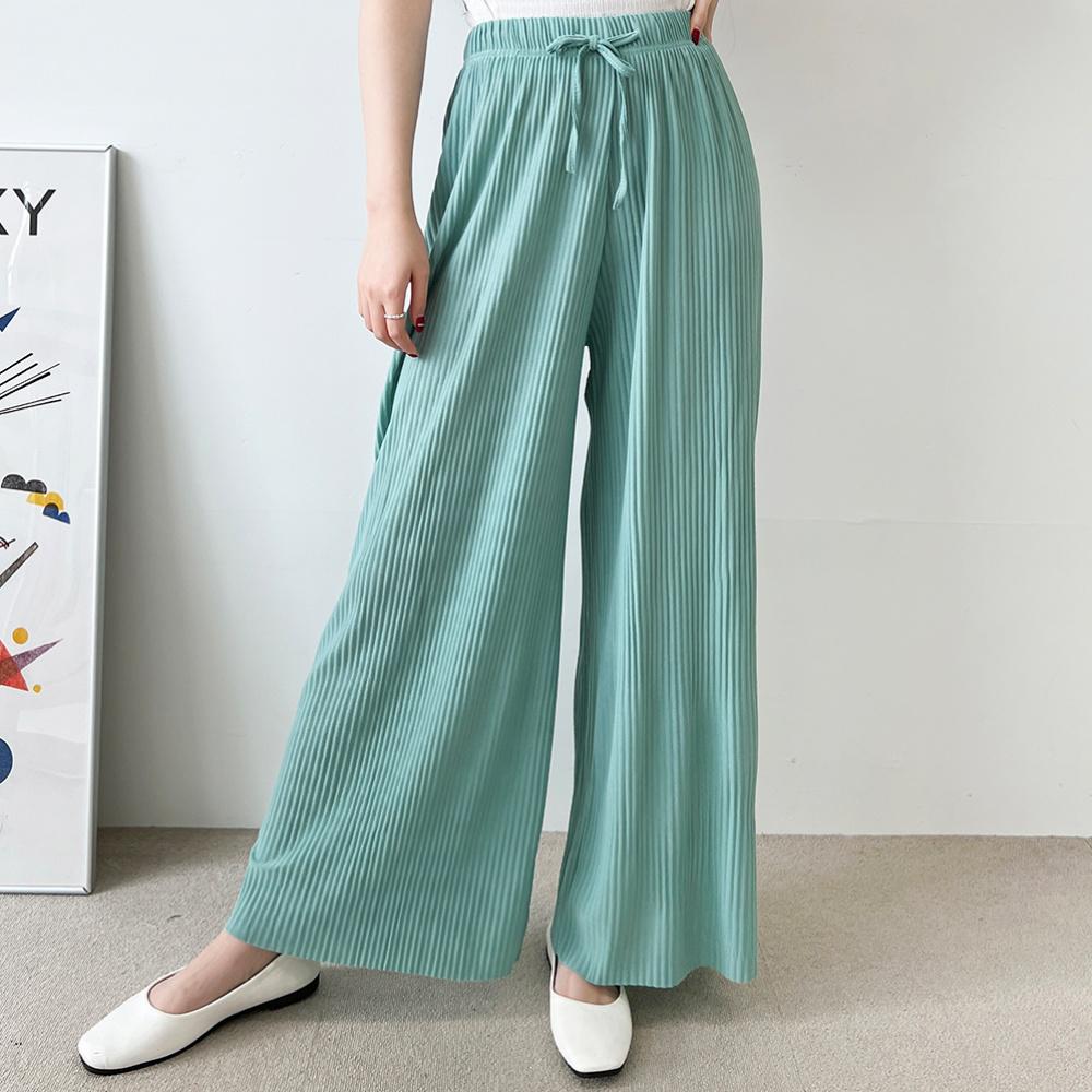 여자 여름 통바지 와이드팬츠 통넓은바지 시원한 경량 골지 가볍게입는 편하게입는 밴딩 주름