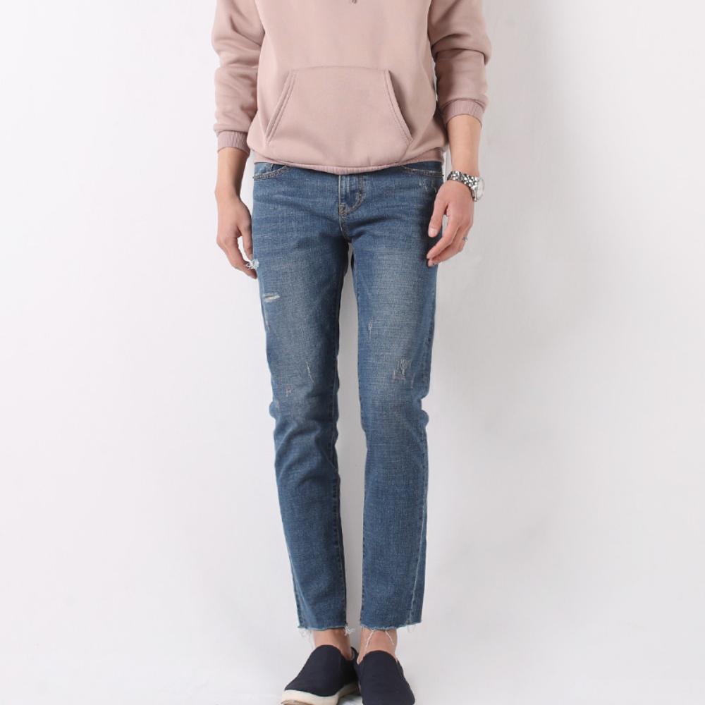 남자 컷팅청바지 핏예쁜 기본청바지 캐주얼 데일리 일자 데님팬츠 다리길어보이는 대학생 중청