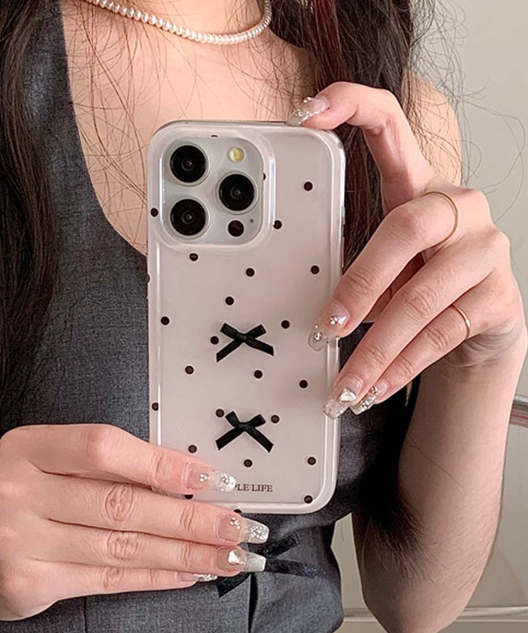 아이폰 밀크티 블랙 도트 리본 젤하드 심플 귀여운 유니크 키치 유니크 발레코어 우정 선물 핸드폰 휴대폰 애플 폰 케이스 아이폰케이스 11 12 프로 13 14 15 프로맥스