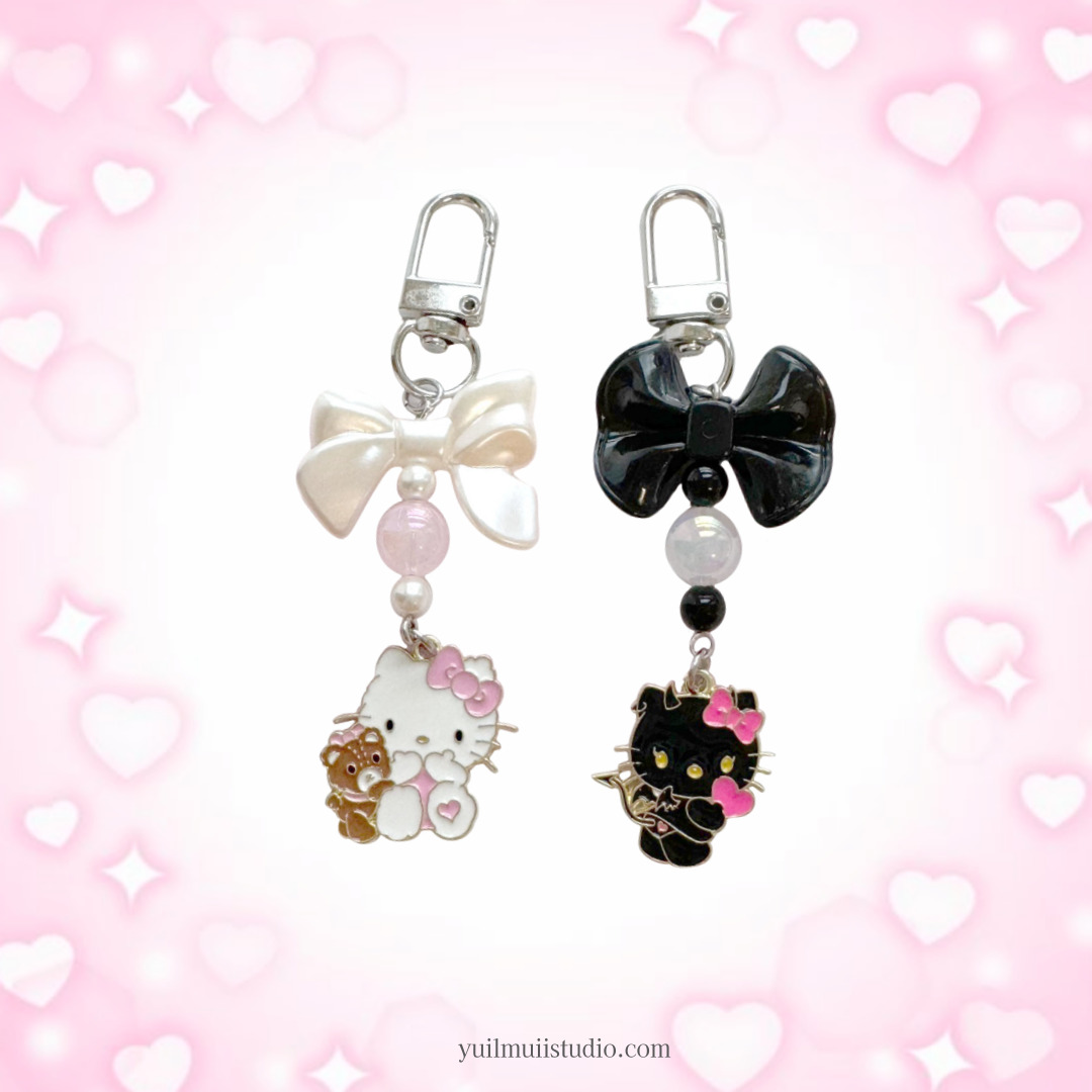 [자체디자인/서비스키링증정❤️] 리본 키티 메탈참 키링 키티키링 블랙키티