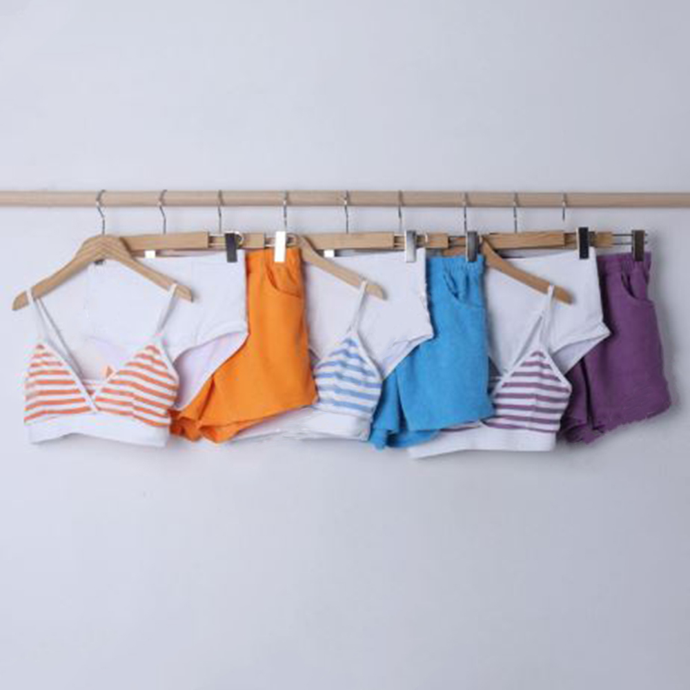 [쓰리피스 세트]스트라이프 비키니 수영복+테리 타월 반바지 3컬러