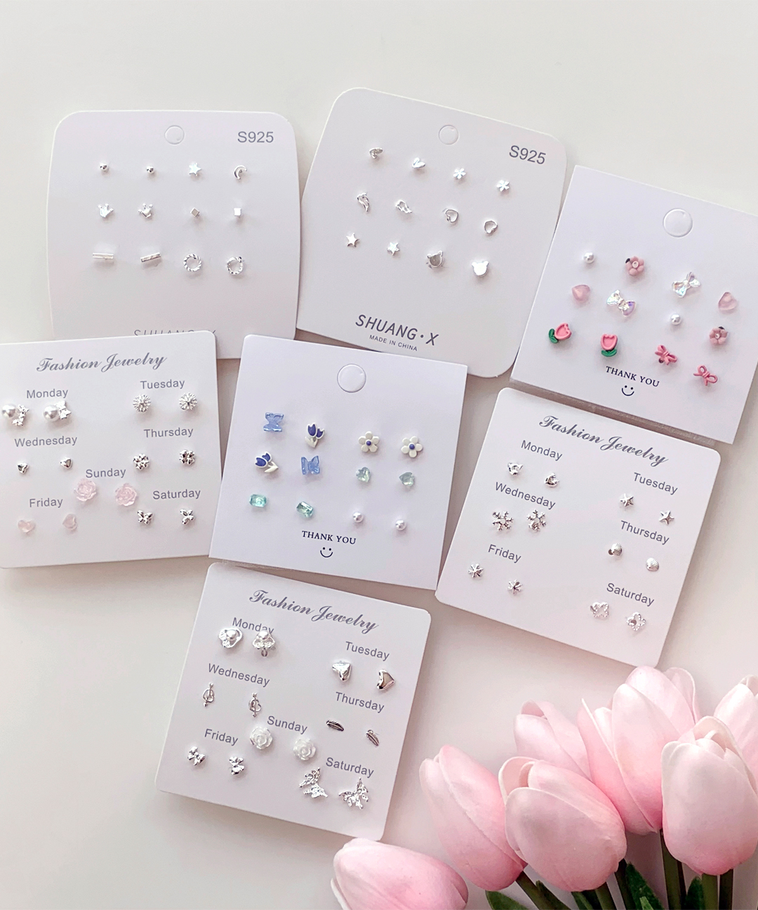 [무배/당일출고] 유기견후원 실버925 하트 진주 스터드 은침 데일리 귀걸이 10종 세트 no.131
