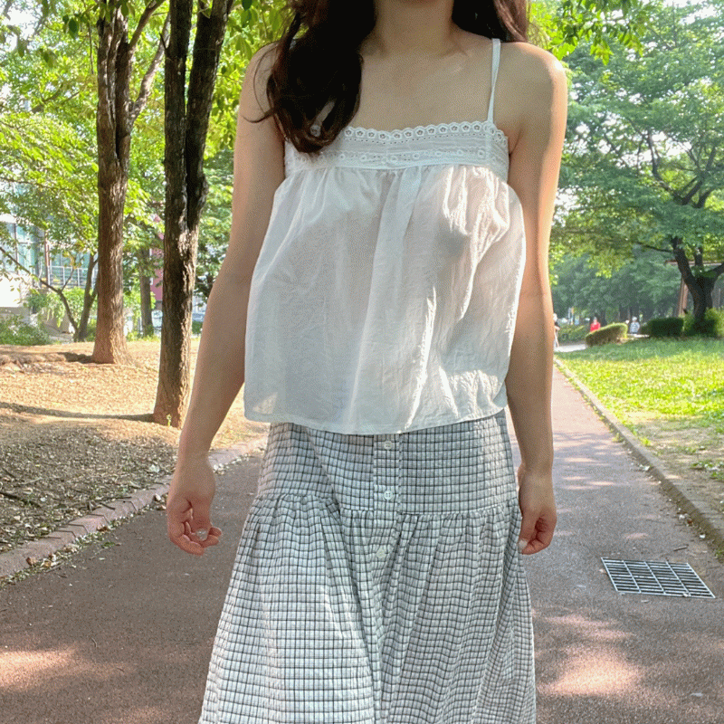 스모크 밴딩 끈조절 플라워 나시 블라우스