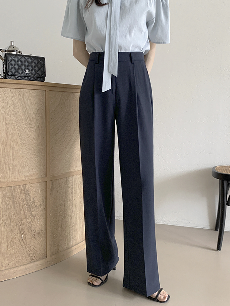 시그니처 찰랑 하이웨스트 핀턱 와이드 슬랙스