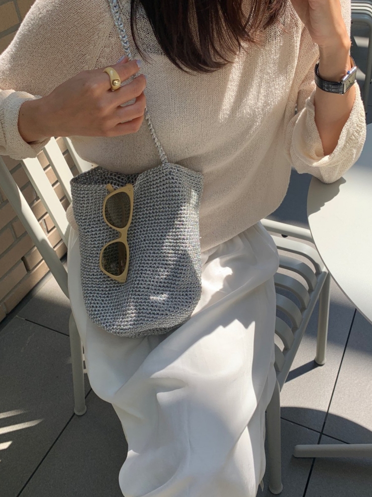 쿨 핸드메이드 글리터 메탈실 메쉬 네트 그물 원통 숄더백 5color