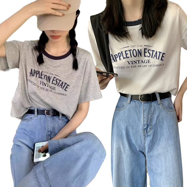 1+1 오버핏 여성 여름 반팔티 베이직 라운드 빅사이즈 여자 반팔티셔츠