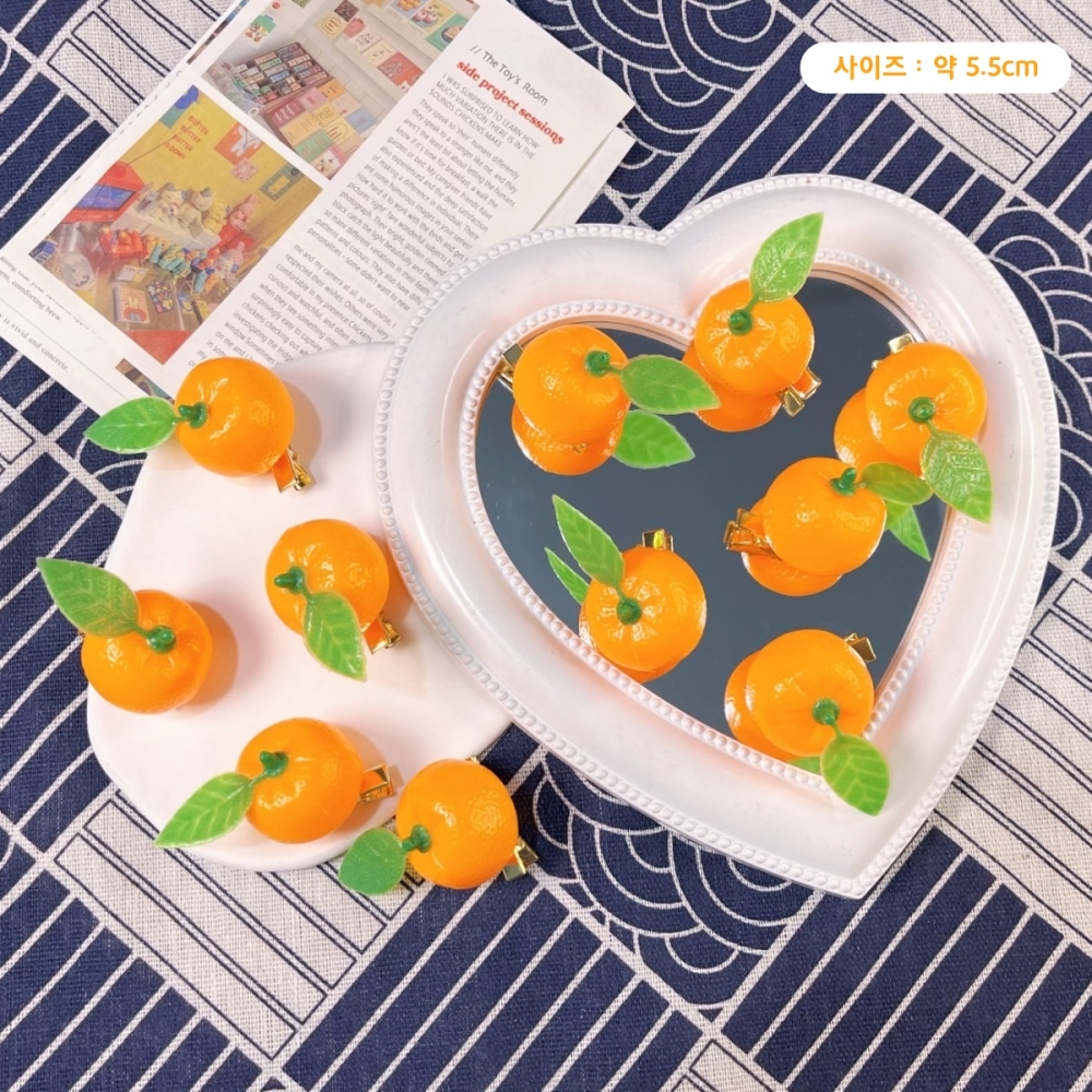 귤핀 체육대회머리핀 미니핀 앞머리고정 과일 음식 특이한 귤