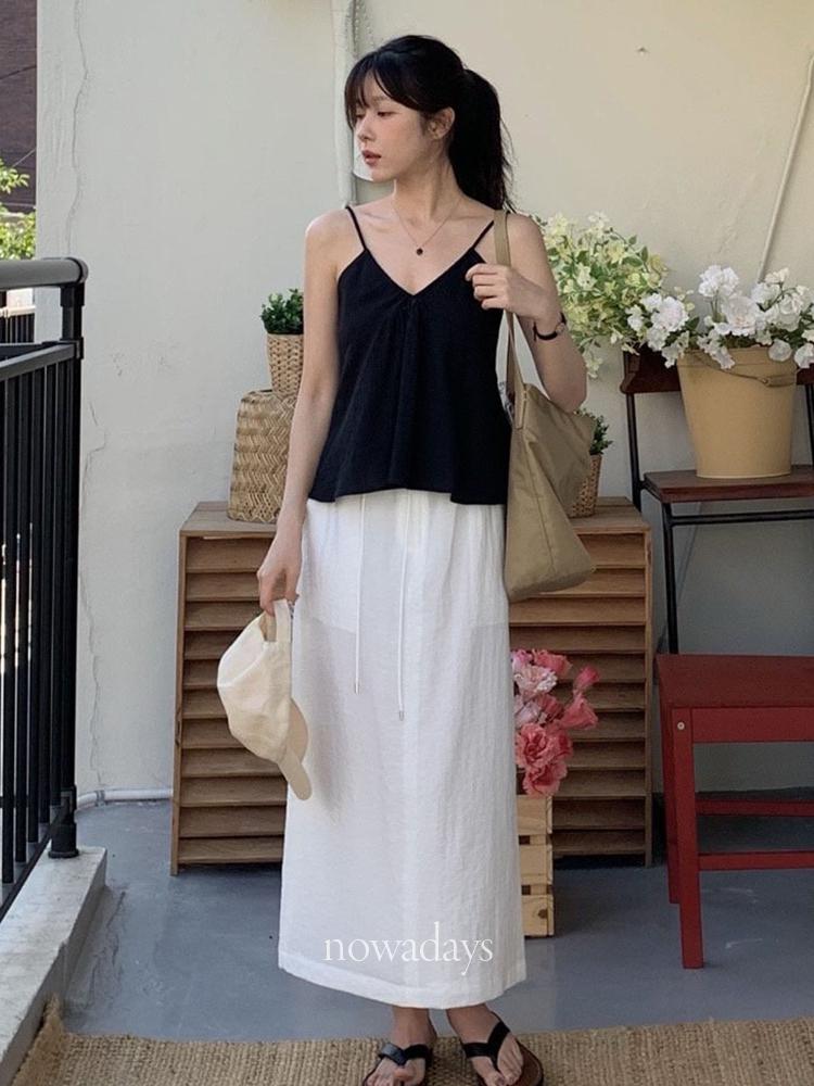 [BIG SALE] 아M 당일 / 베르가못 솔티 스커트 썸머 H라인 스트링 일자 롱 치마 (2col)