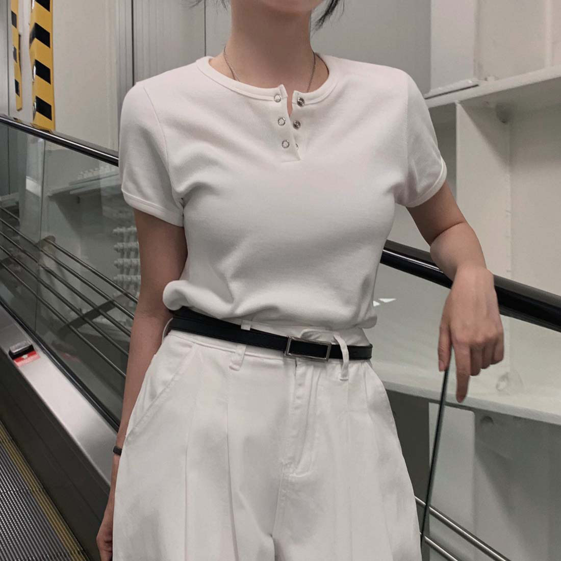 [아이보리 당일출고!] 자체제작 #크치Made 쓰리쿼터 골지 니트 반팔 티셔츠 - t