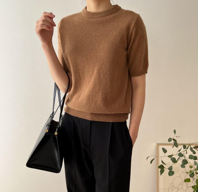 카멜색 니트 폭스 울 고급니트 브라운 색상 카멜 코디