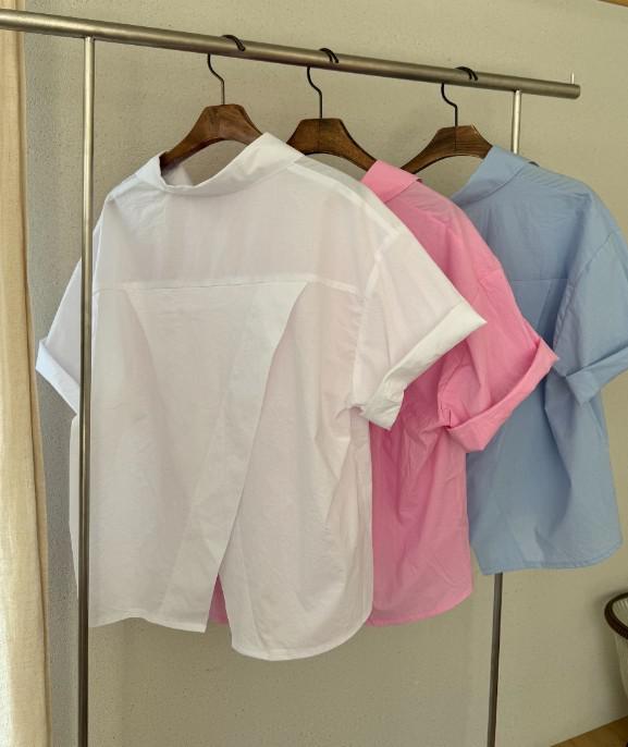 뒷트임셔츠 크롭 뒤트임 여름 화이트 반팔셔츠 핑크 소라