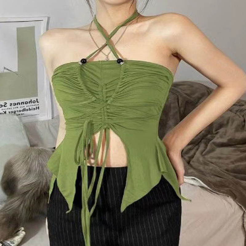 테리홀 홀터넥 트임 나시 무지 끈 민소매 데일리룩 3850