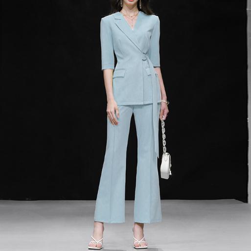 5부자켓 하늘색 여성 정장세트 9부팬츠 투피스 하객룩